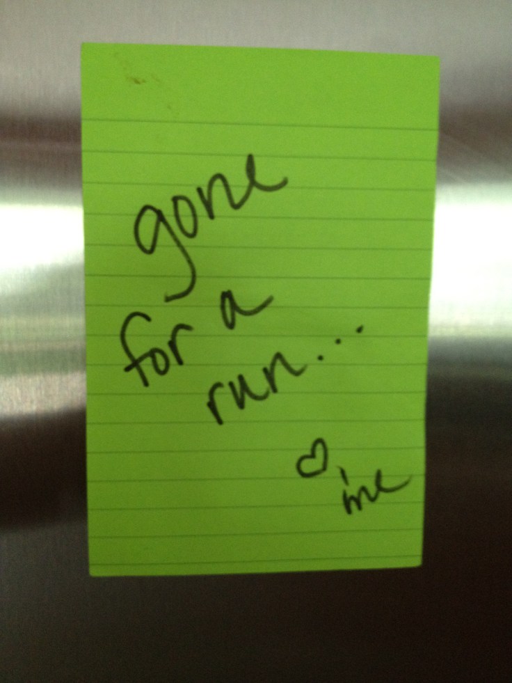 I can’t wait until mine are old enough to leave a note like that. Good luck with your running!