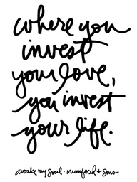 The truth is we are all investors; we give our limited resource of time to whatever is important to us. I think regret comes when we realize this too late, and believe we have not invested wisely. I want to be found as using this resource to the fullest, no matter the return.