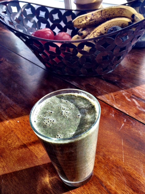 Combine all ingredients in a high powered blender (we use a Vita Mix) and blend for a full minute. Drink immediately for best nutrition, vitamins and minerals start to break down quickly. Makes approximately 40 oz. so in our house that is two large servings for breakfast.