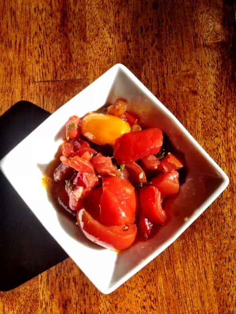 It’s that time of year! Pick as many tomatoes as you can and prepare them using this recipe, then you have the makings for bruschetta (serve on grilled french bread with parmesan), margarita pizza, caprese salad (simply add balls of mozzarella) or any pasta dish – hot or cold. I got this recipe from The Pioneer Woman last year and use it weekly in the summer.