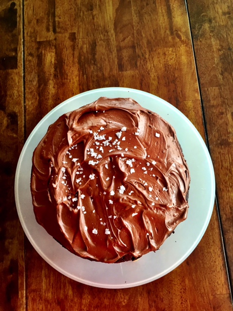 - Frost top and sides of cake in a swirling motion. Sprinkle with sea salt. This cake should be refrigerated for up to three days.