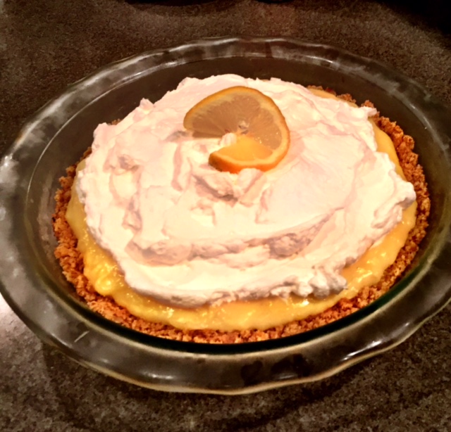 I have been in a lemon mood lately, not sure why. Last Spring we were in Italy and saw so many lemon trees that I had to buy a plant when we returned. It took 6 or 8 months, but my plant returned one perfect lemon. It was the sweetest thing. So this year I’m hoping to double our even triple our harvest! In the meantime, I’m making lemon pie with organic lemons because the recipe calls for lemon zest, and it feels like the safer way to go. I found a baked lemon pie recipe that I like from ‘Tastes Better from Scratch’, but didn’t have sour cream on hand so I used Greek yogurt instead, and I prefer a graham cracker crust with lots of nuts in it so you get the sweet and salty combination, so I changed that too. Here is the result.