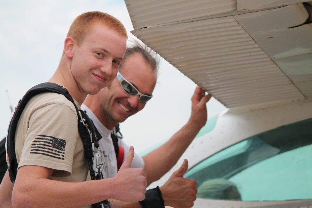 IMG_3598Recently our son turned eighteen, and for the last year or two he has talked about sky diving. I have had an interest int he same thing, so I agreed to going with him right after he was of legal age to do so, and Saturday was that day for us. We drove three hours away to meet a team of young men who work out of a van and an old school bus, details that didn’t make my guy feel better. It’s so interesting to me how this next generation finds ways to do things differently; they have a completely mobile operation that allows them to do business anywhere at all. The owner of the company said that in October he shuts it down and goes to Hawaii for the winter months. Not a bad idea.